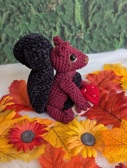 With crochet hook size 2.5 the squirrel will be around 11 cm tall, 8 cm long and 6 cm wide.