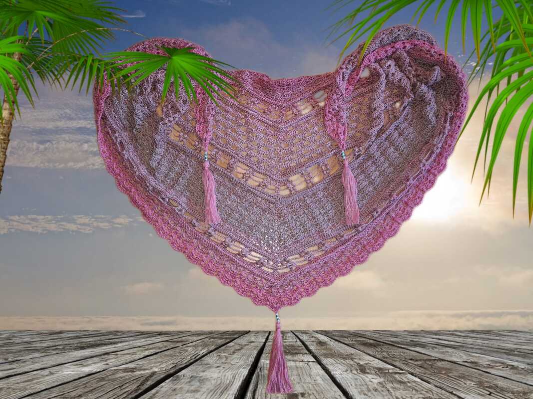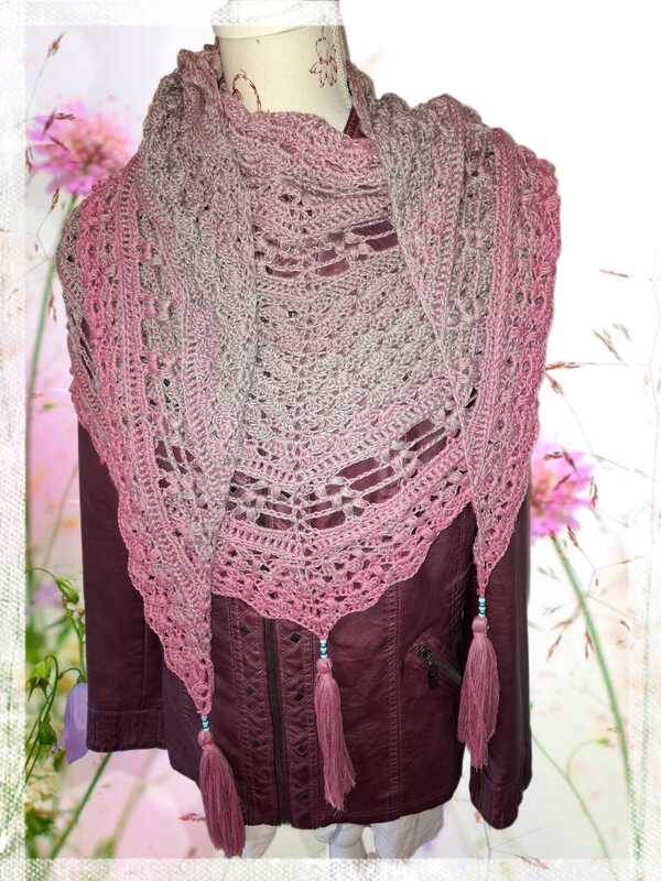 Das fertige Tuch hat je nach Häkelweise eine durchschnittliche Größe von 210cm x 65cm.