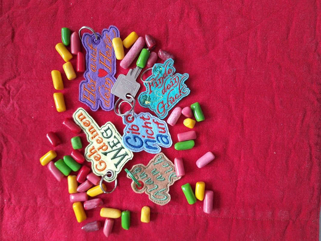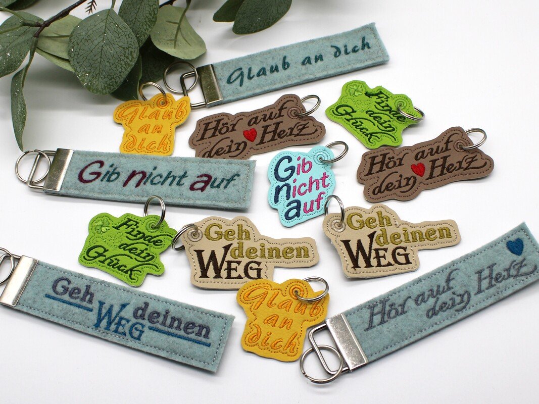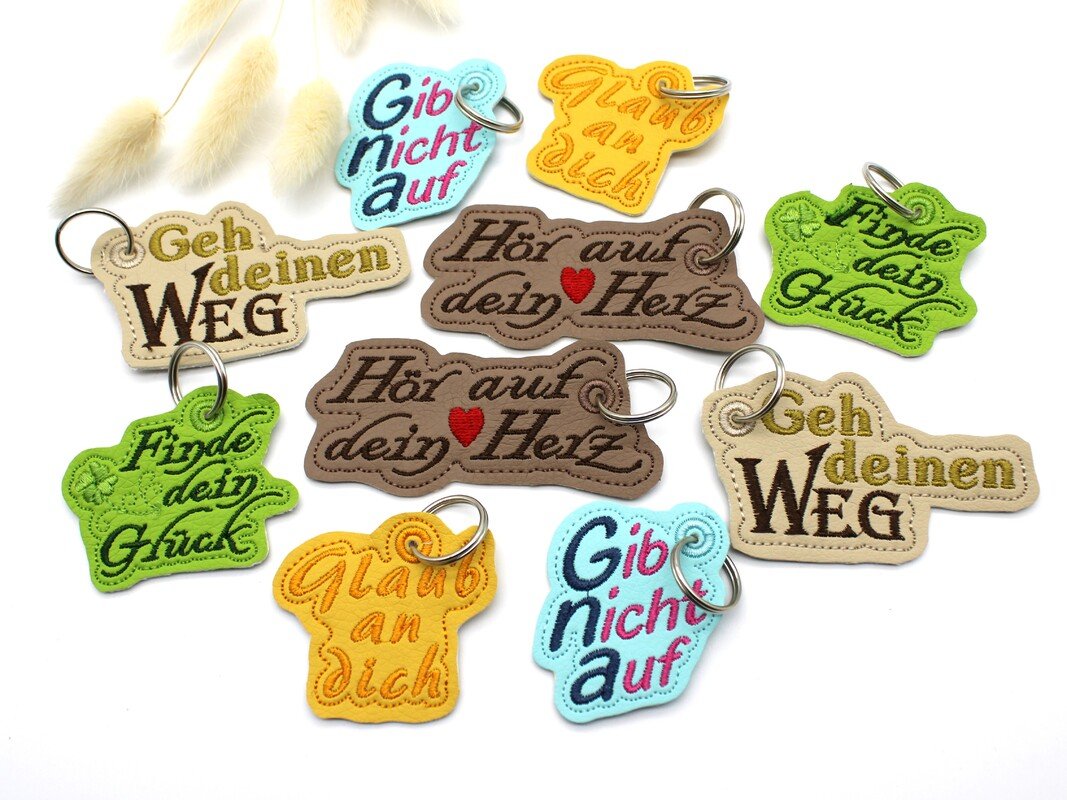 ITH Stickdatei für einen Schlüsselanhänger mit verschiedenen Schriftzugen im SET