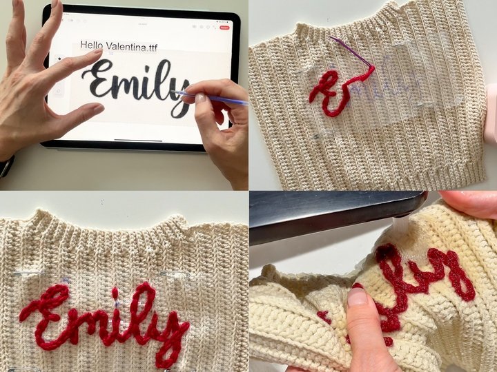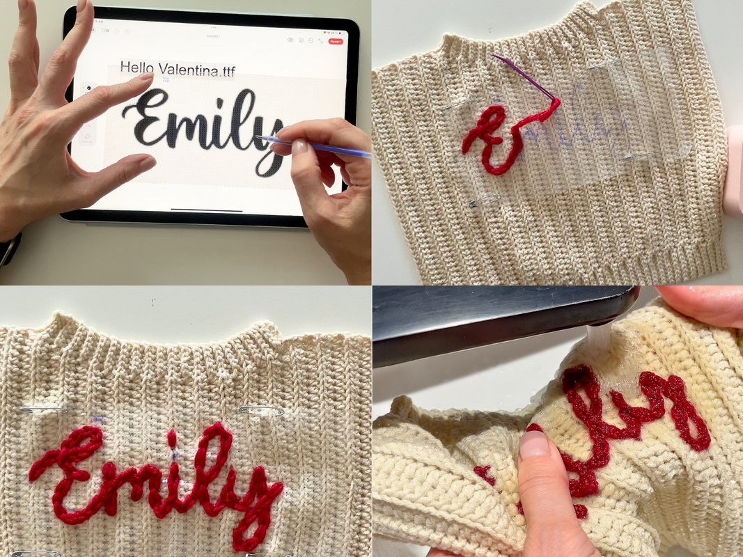 Tools: measuring tape, scissors, stitch markers, tapestry needle, water-soluble embroidery canvas (optional).