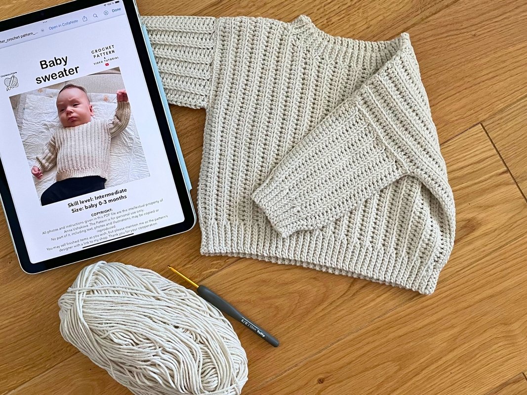 Crochet a cozy and adorable baby girl sweater with this easy-to-follow pattern and video tutorial! You’ll learn how to shape the neckline, add stretchy ribbing, and join all parts step by step. Perfect as a baby shower gift or a sweet, handmade piece for your little one. Includes free future updates with more sizes!