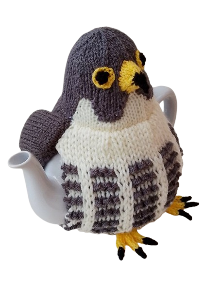 Please note: this product is the knitting pattern only, for you to knit your own Peregrine Falcon tea cosy.