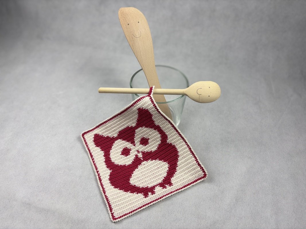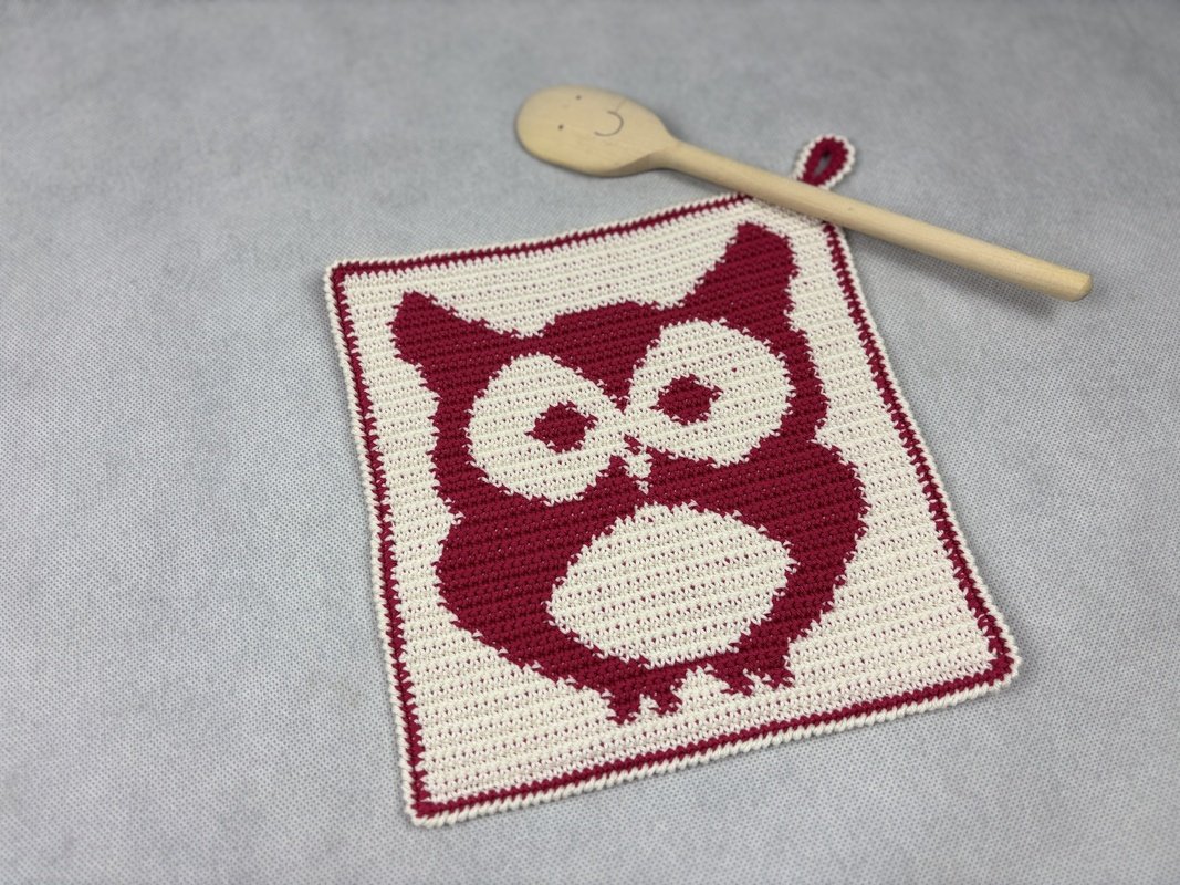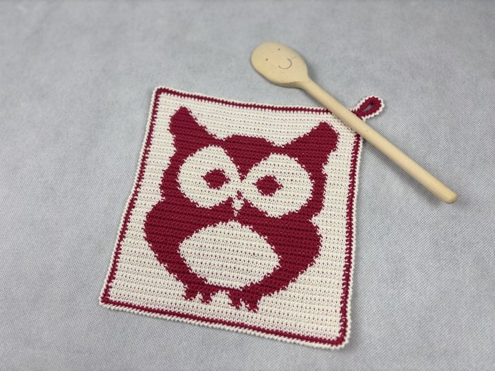 Would you like to crochet a set of pot holders? You can find matching pot holders in my shop at: https://www.crazypatterns.net/de/users/view_collection/3244/eulen-eulen-eulen. There you will also find a value set with four matching pot holders.