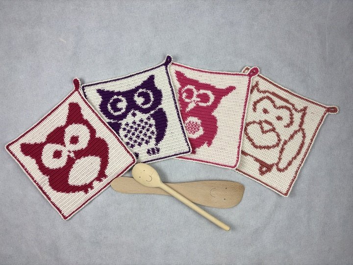 You can find the individual instructions for the potholders in my owl collection: https://www.crazypatterns.net/de/users/view_collection/3244/eulen-eulen-eulen