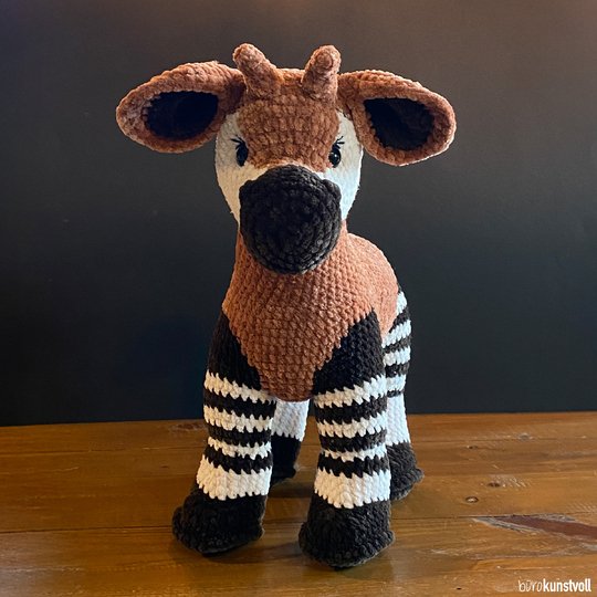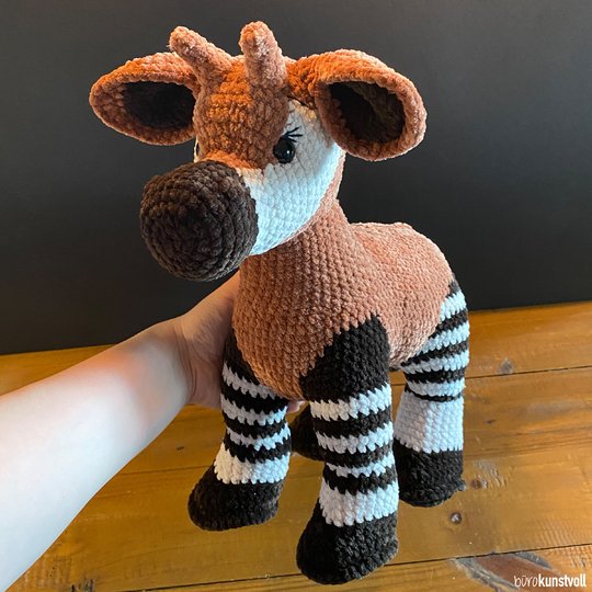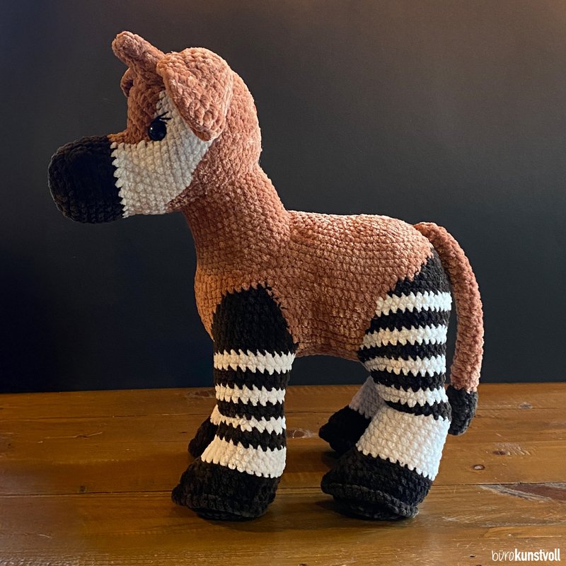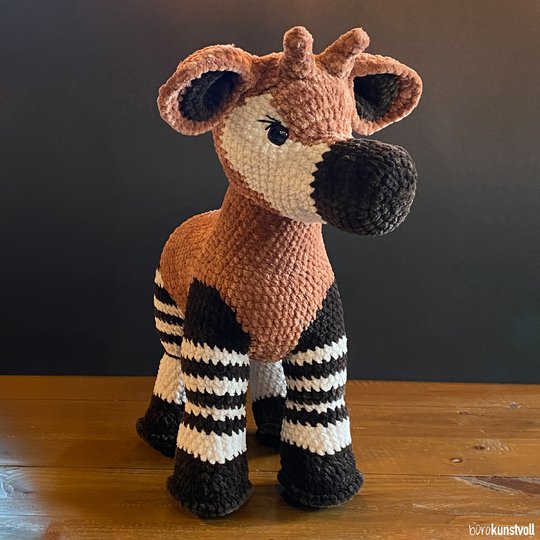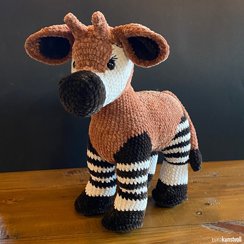 this pattern provides you with step-by-step instructions on how to crochet Zola the okapi by yourself.