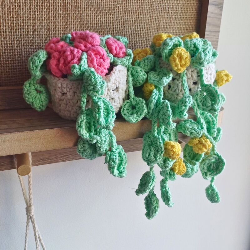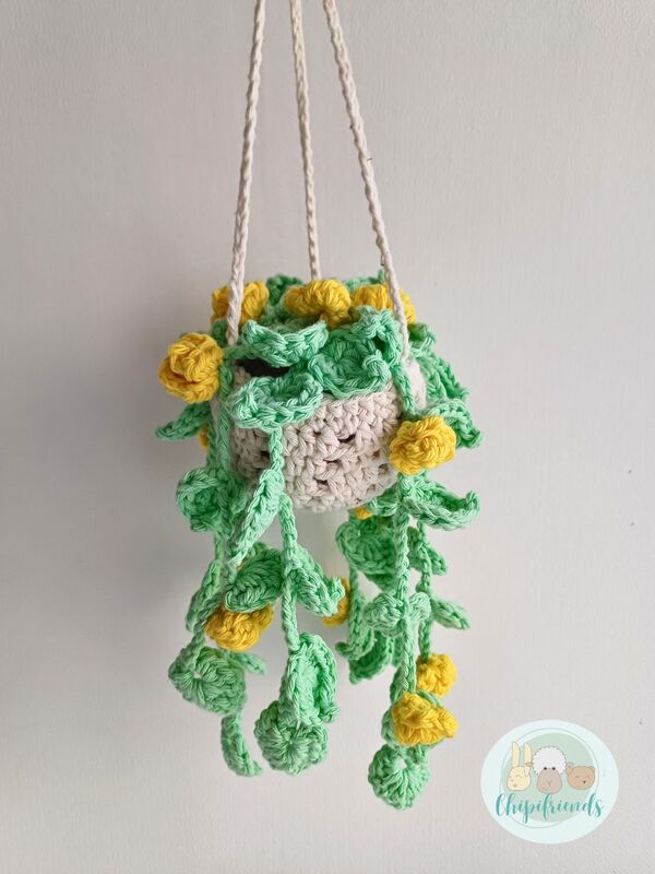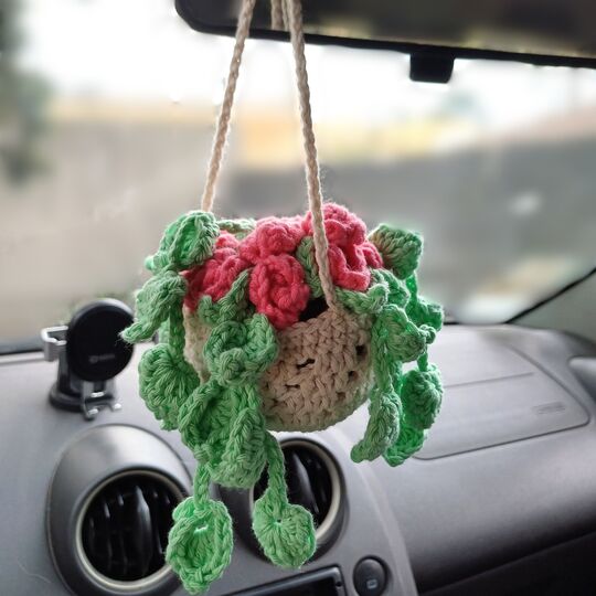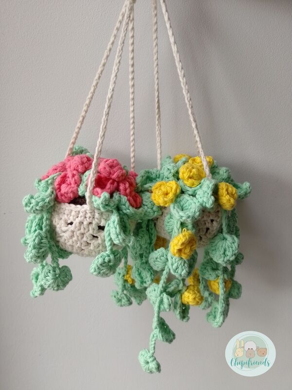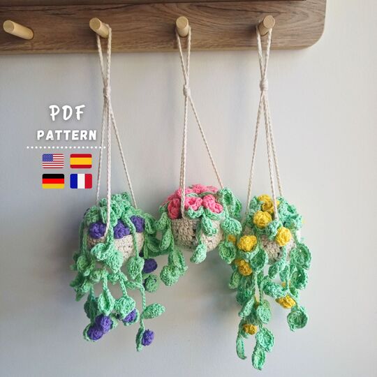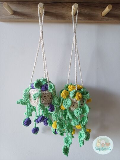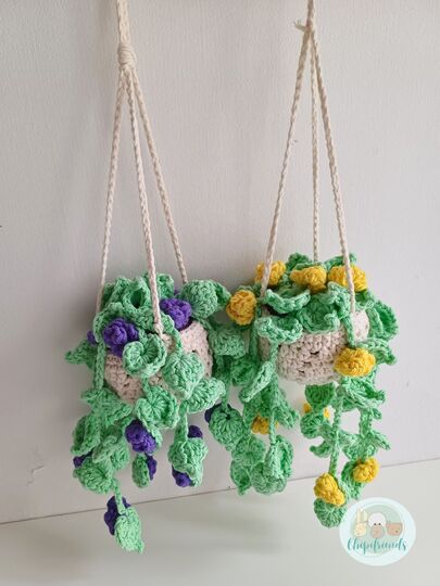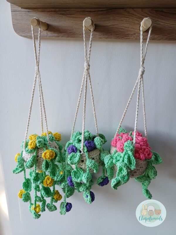 With this pattern you can make some divine hanging flower plants wich are perfect for decorating and bringing life to your home, cars, or offices!