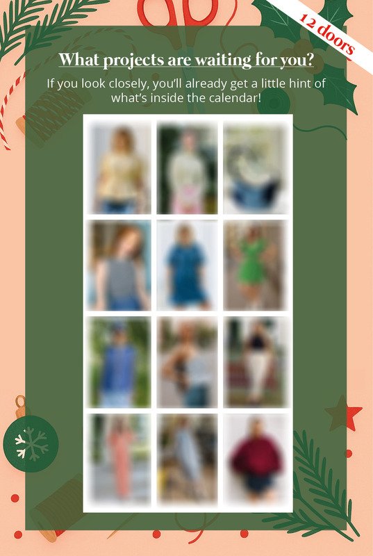 Spread the joy of the Christmas season with these cool patterns. Order your 2025 Digital Sewing Advent Calendar today, open the first sewing pattern door on December 1, 2025, and get cozy with your new sewing projects all winter long!