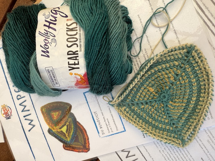 Bunte Wimpel tunesisch in Runden gehäkelt