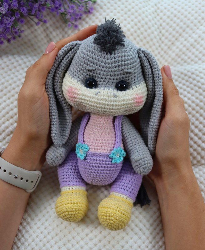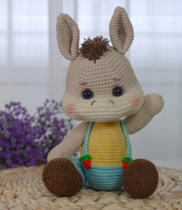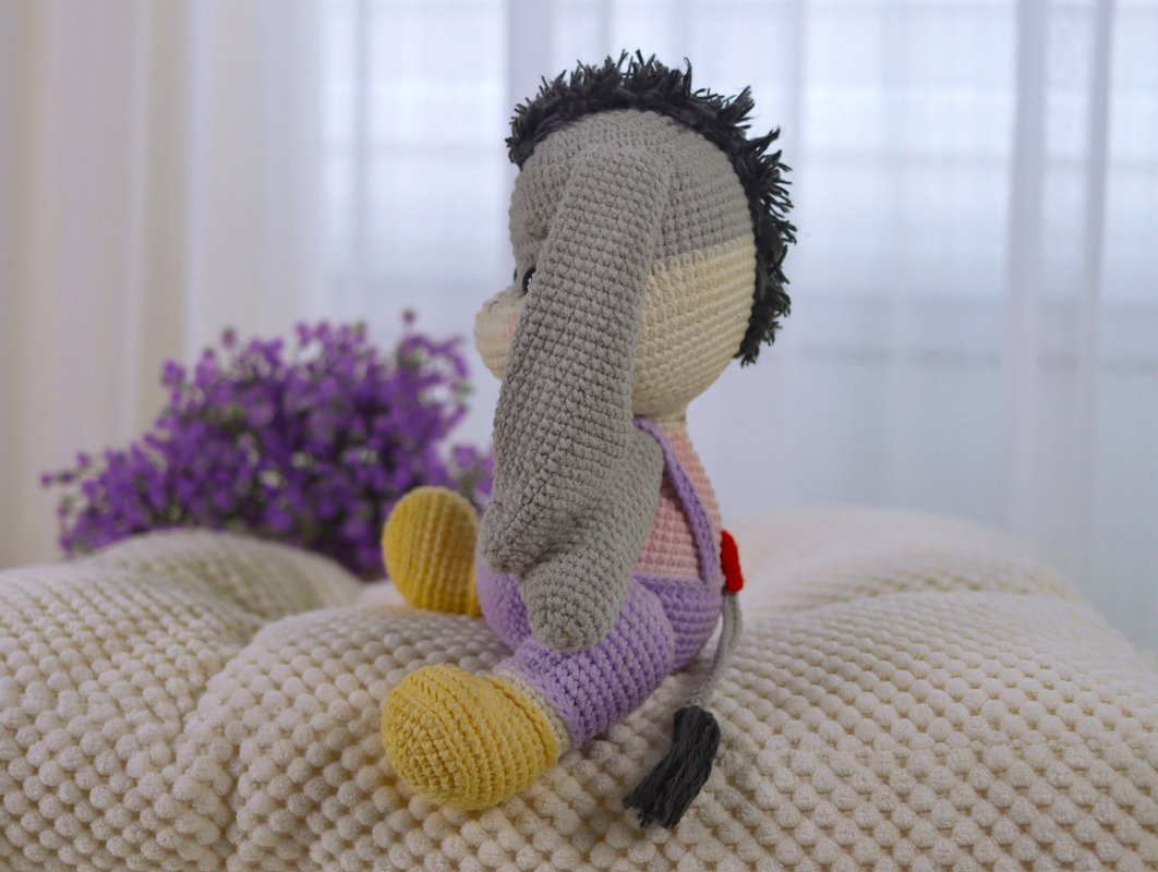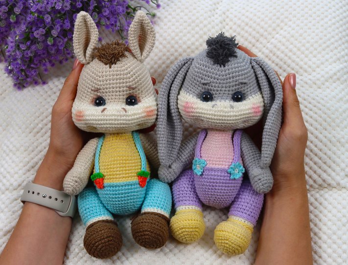 Mit dieser Anleitung kann man den Esel in verschiedenen Größen und Farben häkeln. Je nach Garnstärke wird der Esel kleiner oder größer.