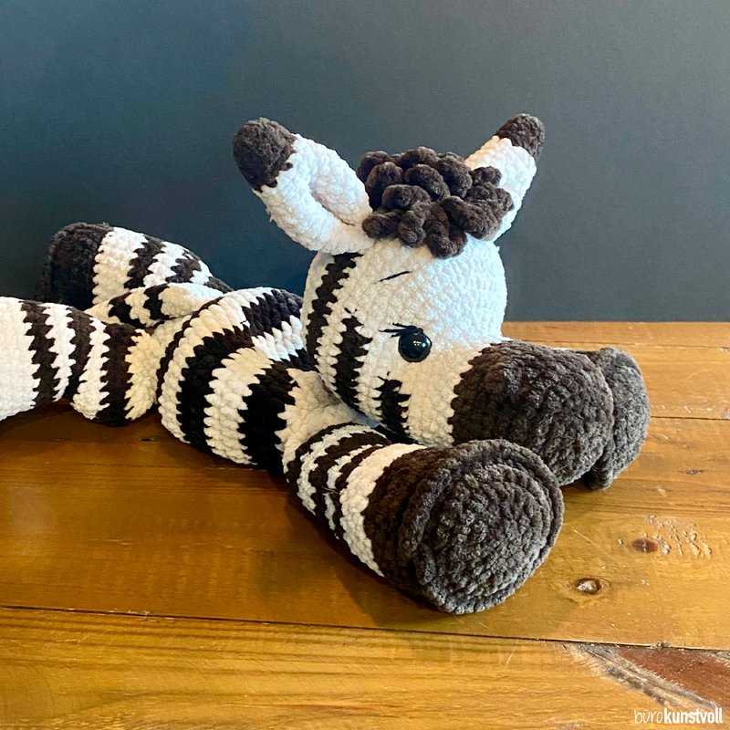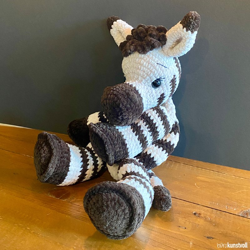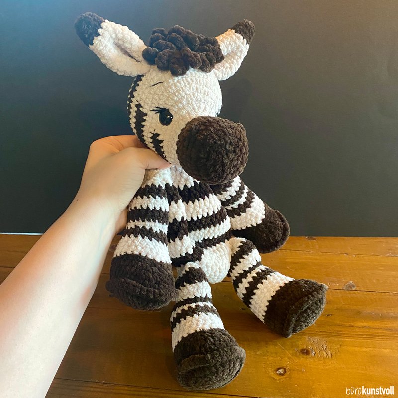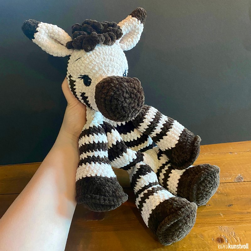 this pattern provides you with step-by-step instructions on how to crochet Mali the zebra by yourself.