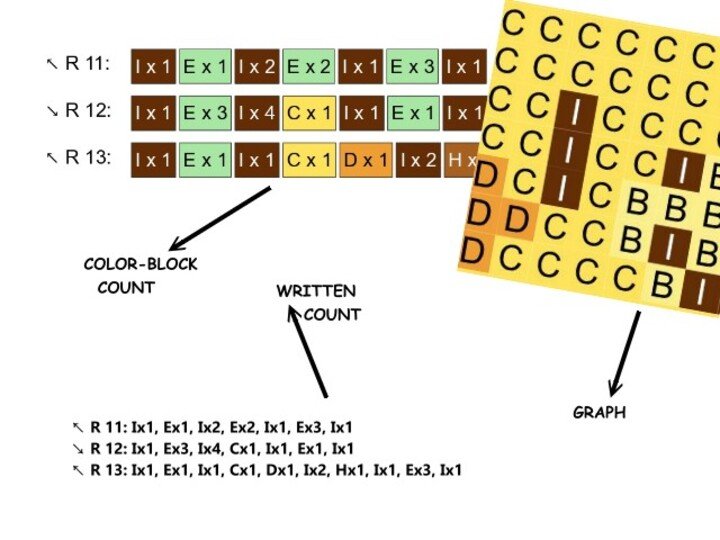 -colored number blocks for each row for C2C technique