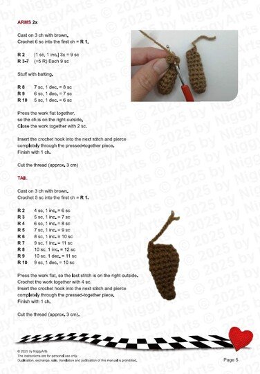 In this tutorial, formulas are used in the following style: [2 sc, 1 decrease] 3x