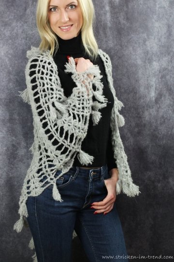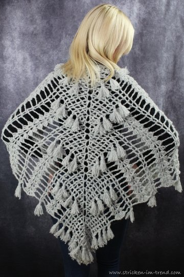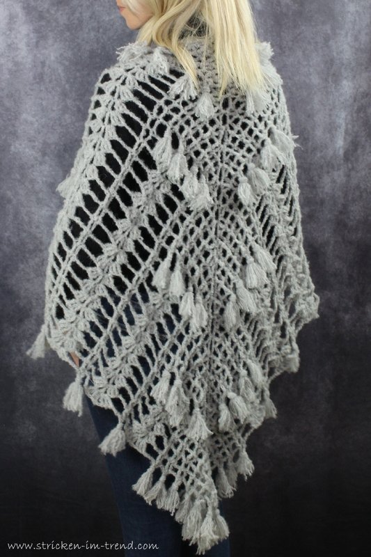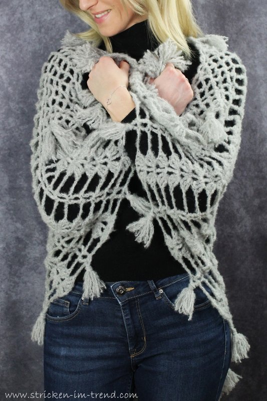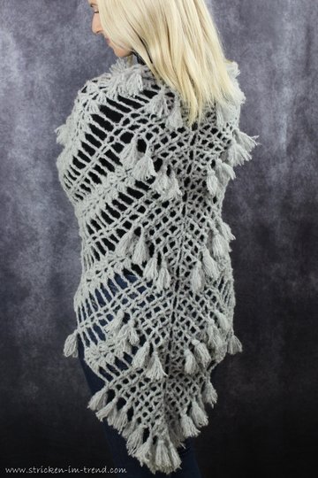 The stitch pattern grows quickly, the size can be adjusted as you like, and the optional fringes give it a relaxed finish.
