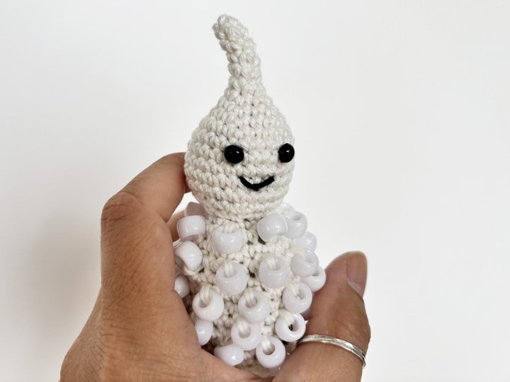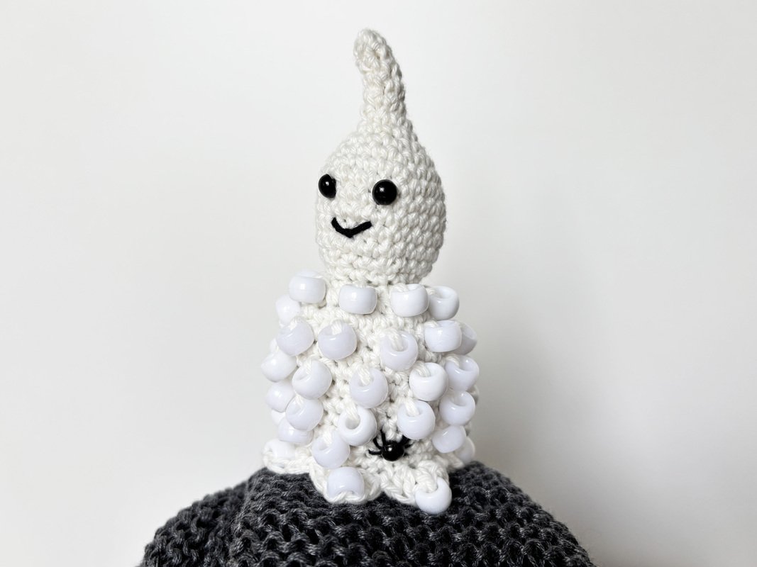 With this item, you’ll receive a complete crochet fidget pattern for a cute little crochet fidget toy amigurumi ghost – featuring crocheted-in beads and a tiny spider.