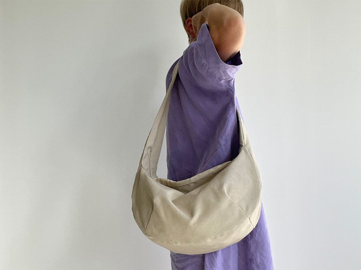 Saturday Bag Half Moon Sling Bag The Saturday Bag is a semi-circular shoulder bag with a zipper and wide strap that fits perfectly to the body. Casual & chic.