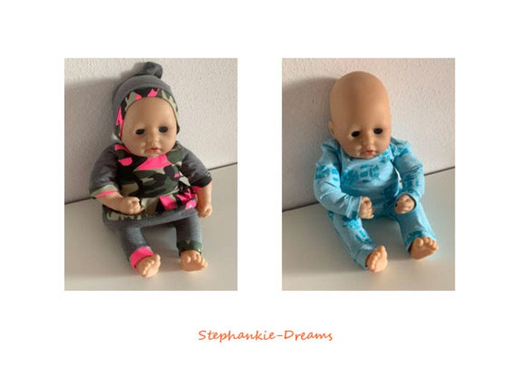 The pattern is designed for dolls measuring 16,93 in, such as Baby Born and Baby Annabell, as well as for dolls measuring 14,17 in, such as Baby Born and Baby Annabell.