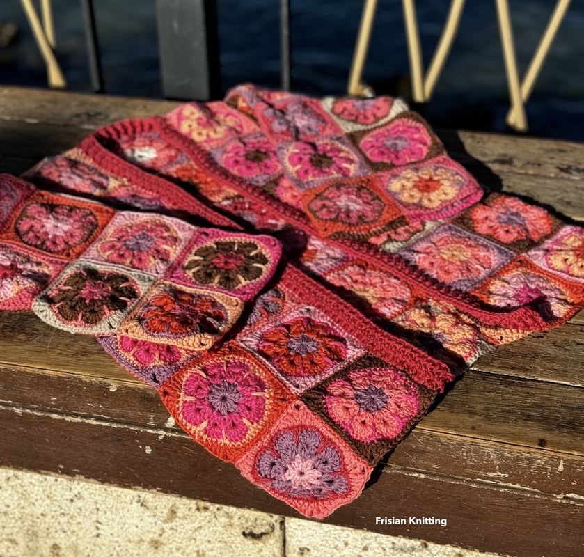 First you crochet all the granny squares and then sew them together and then you crochet the edge around the vest