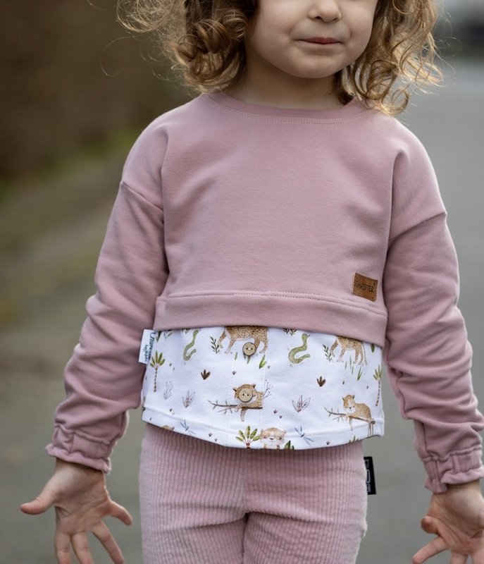 Das Cropped odernicht kann als bauchfreies T-Shirt, Pullover oder Hoodie genäht werden. Für die die es lieber etwas versteckter mögen, aber trotzdem einen Cropp Look möchten, gibt es eine Bluse oder Tunika mit verschiedenen Volant Optionen, die den Eindruck erwecken, dass etwas unter dem Cropp Shirt getragen wird.