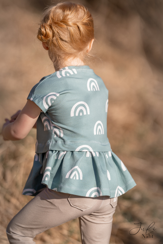 Das Schnittmuster bringt viele tolle Möglichkeiten mit, so kann das Cropped ganz lässig mit Kapuze als Hoodie genäht werden oder auch einfach nur als Cropped Pulli oder T-Shirt. Wer es etwas schicker und versteckter mag kann eine kurze Bluse daraus zaubern. Eine Tunika Variante mit drei verschieden Volant Möglicheiten und diese dann auch noch gleich in 2 verschiedenen Längen ist ebenfalls dabei.