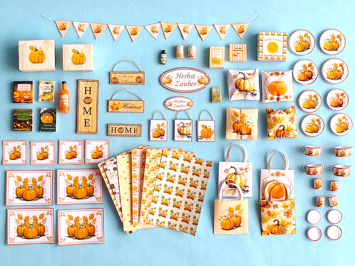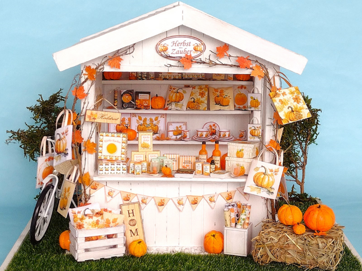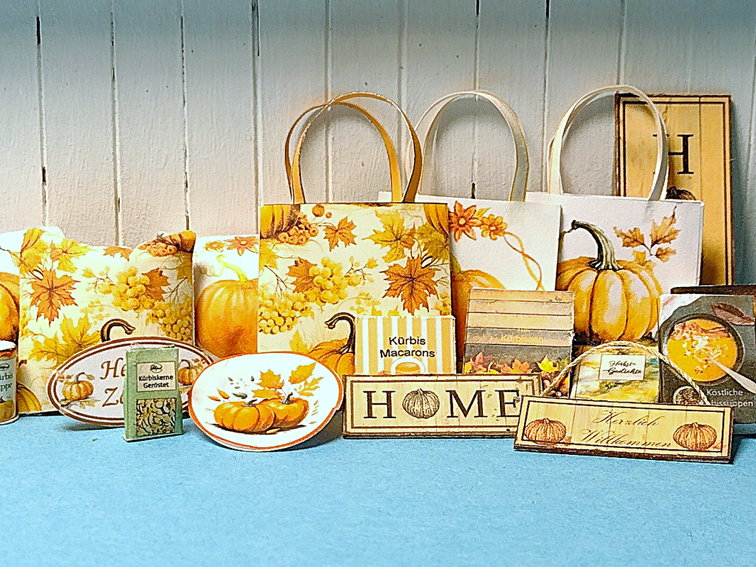 Mit Hilfe dieser Anleitung und den dazugehörigen Bastelbögen kannst du dir herbstliche Miniaturen aus Papier im Maßstab 1:12 basteln.
