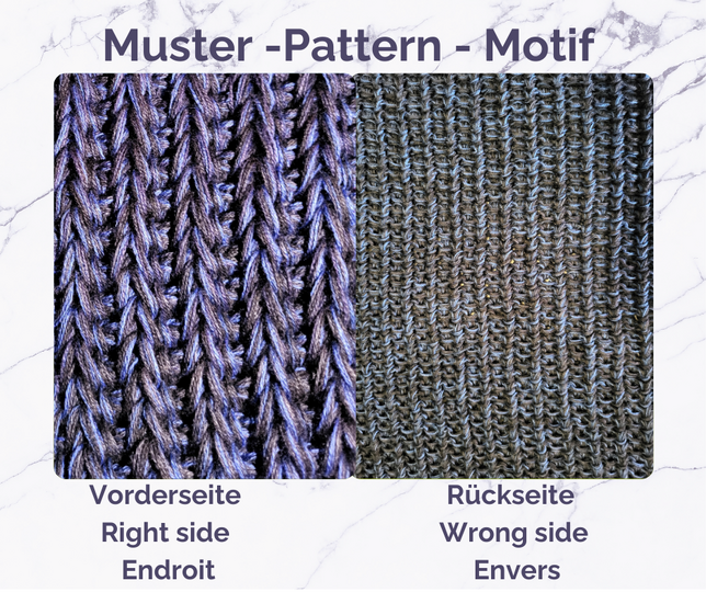 This pattern does not use standard clothing sizes (S, M, L, XL or 38/40/42 …). Instead, the correct size is determined individually based on your gauge swatch and the measurement tables included in the pattern. This way, you can adjust the sweater vest precisely to your own body measurements.