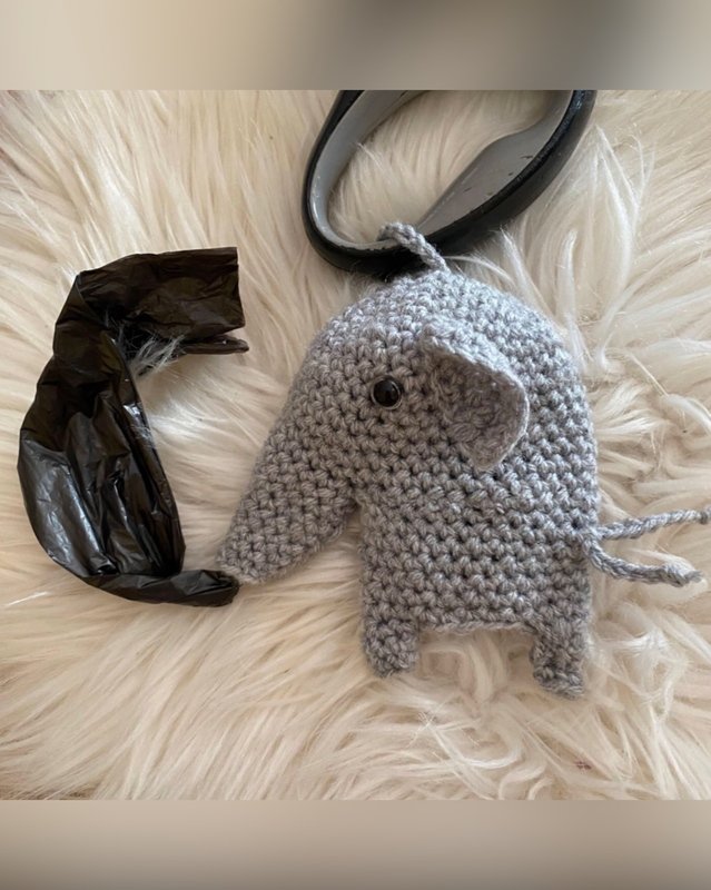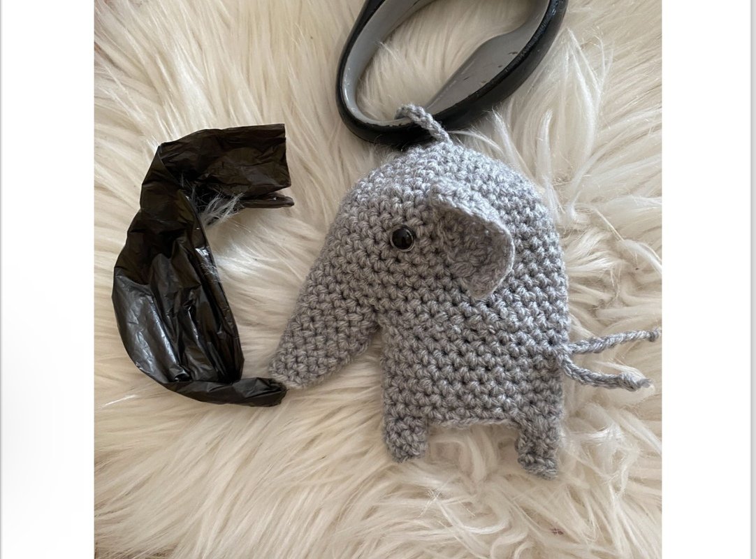 Diese süße Tasche für Kotbeutel ist der ideale Begleiter, wenn man mit dem Hund raus geht. Platz findet eine ganze Rolle Beutelchen und durch den Rüssel kann man sie entnehmen