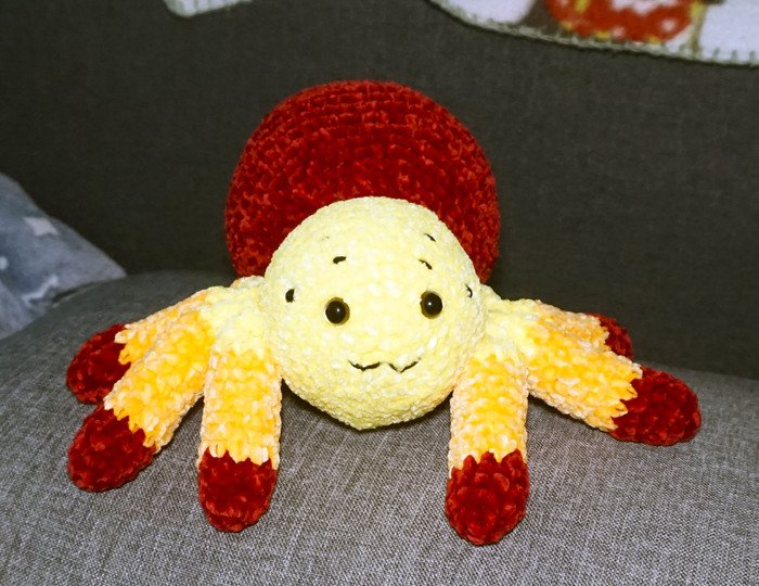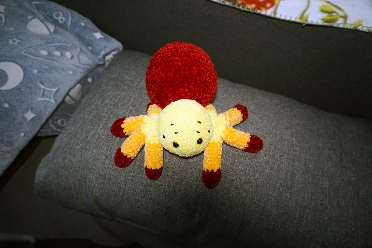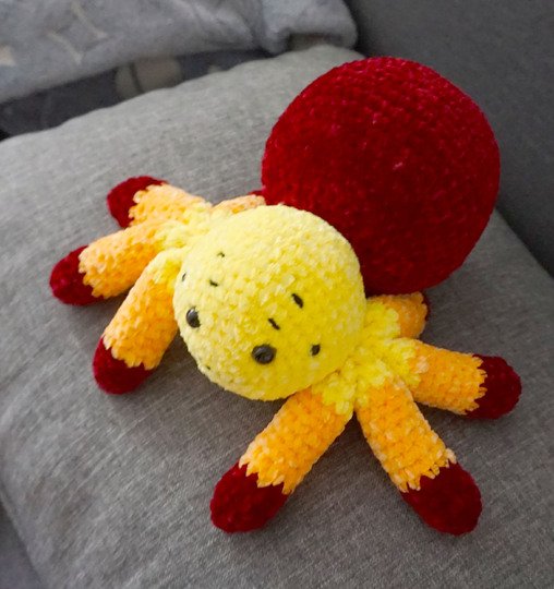 Our cuddly spider is crocheted from soft chenille wool, which makes it irresistibly soft and fluffy.
