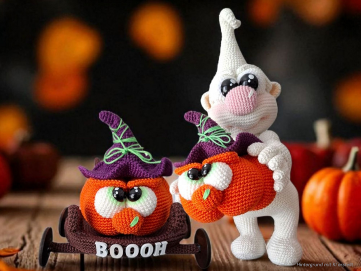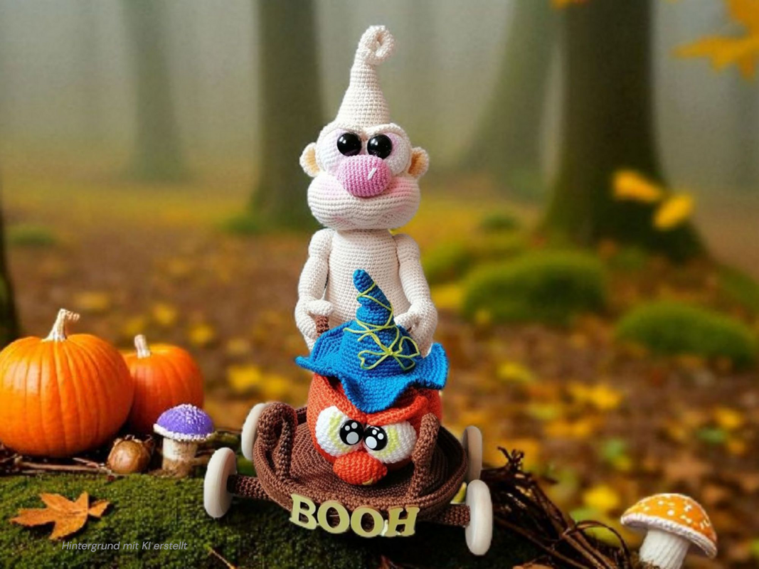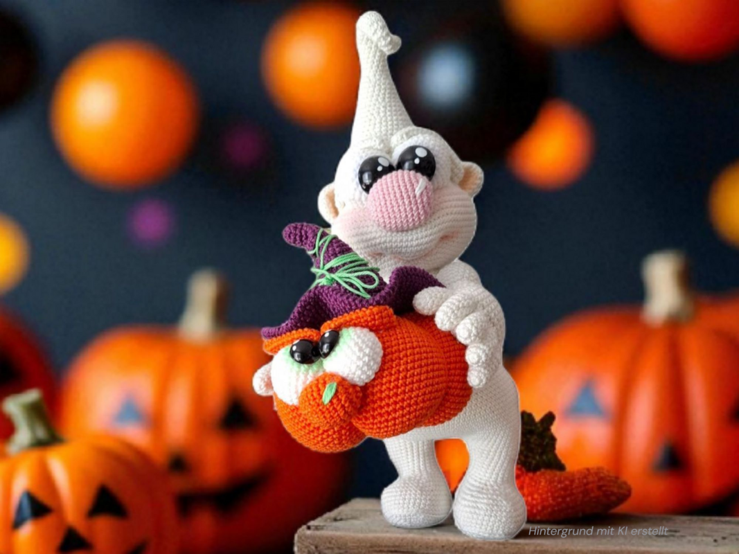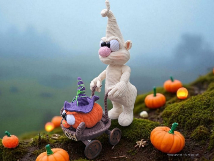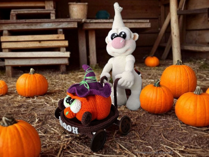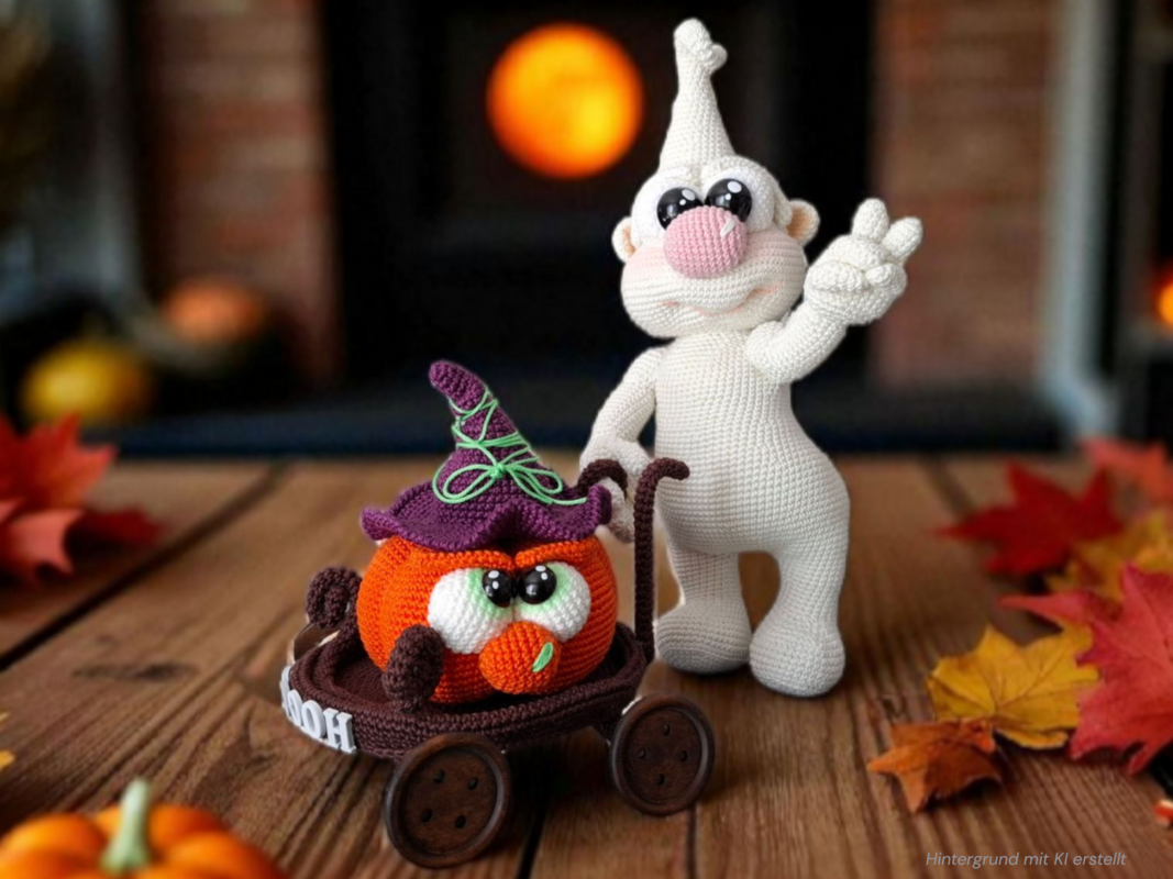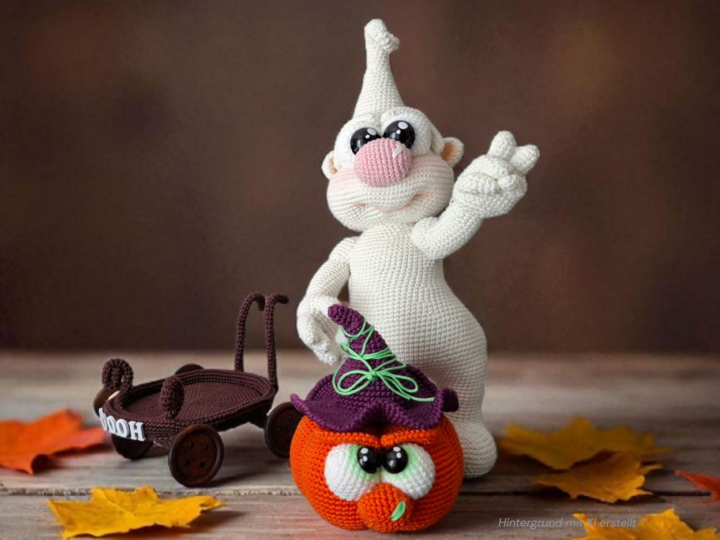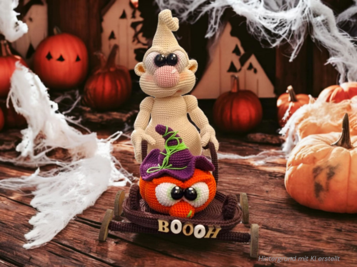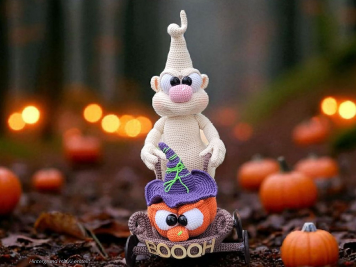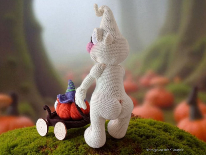 Häkelanleitung Günnie Geist mit Kürbiswagen von Wunderlich`s Kreativchaos