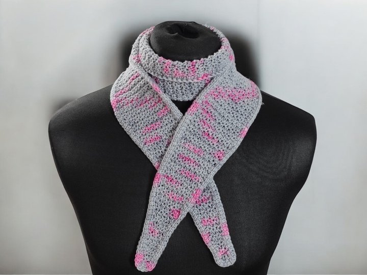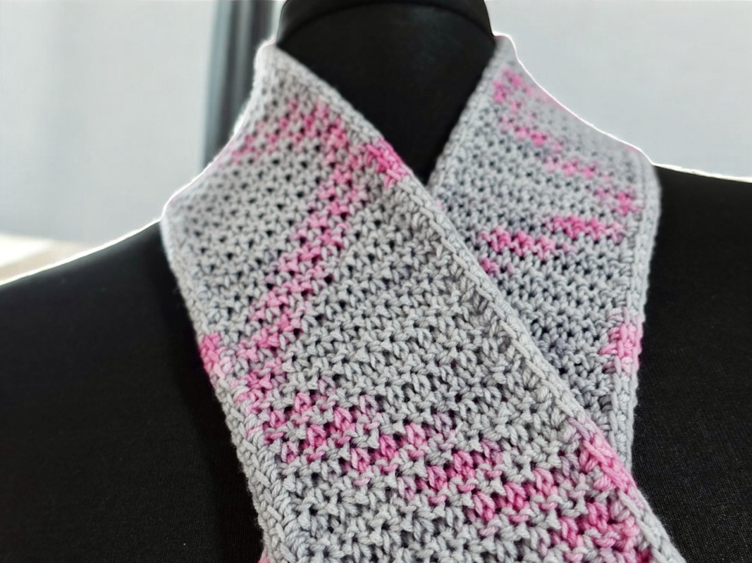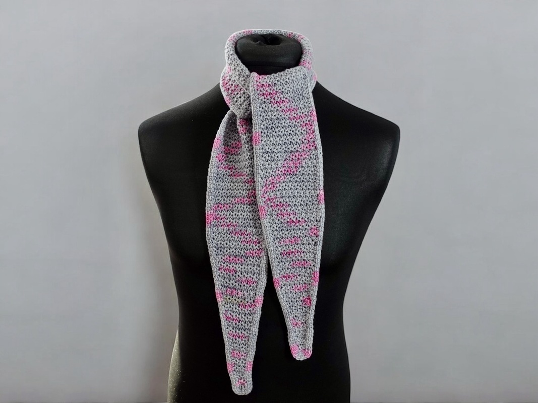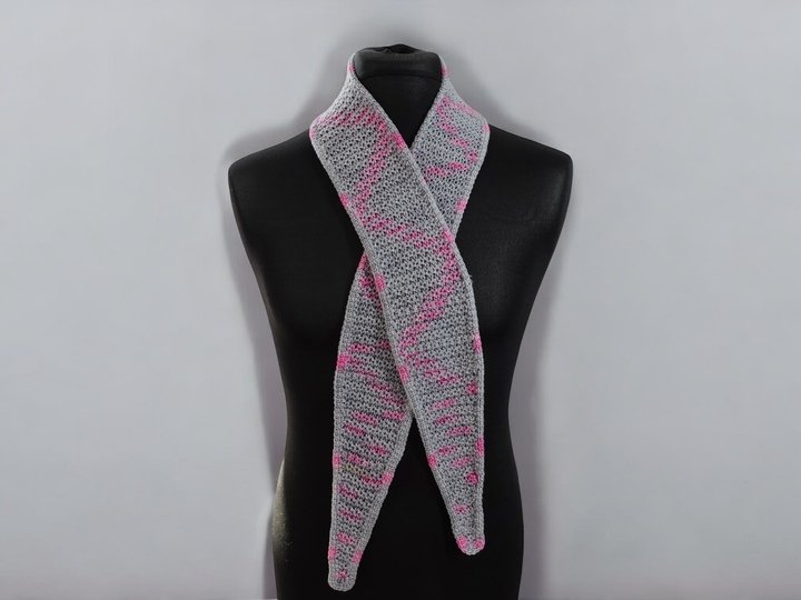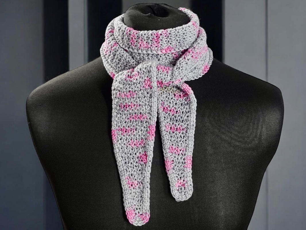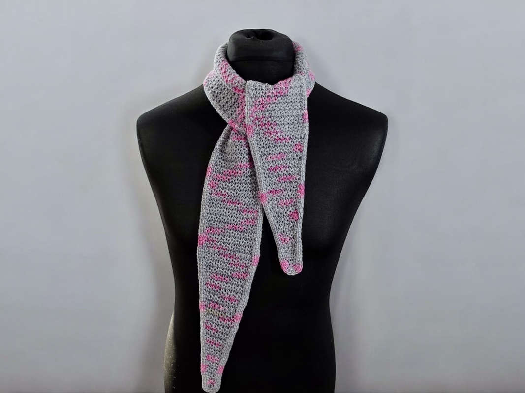 In this tutorial, I’ll show you how to crochet a cute mini scarf. It’s worked very simply in rows – always alternating a stitch with 2 stitches. This creates a nice, even pattern. To finish it off, the scarf gets that special touch: I-cord edges, crocheted from tip to tip. This not only gives it a clean finish but also a really modern look. The key thing to remember: thin yarn = thin scarf. You can easily adjust the length and width to your liking.
