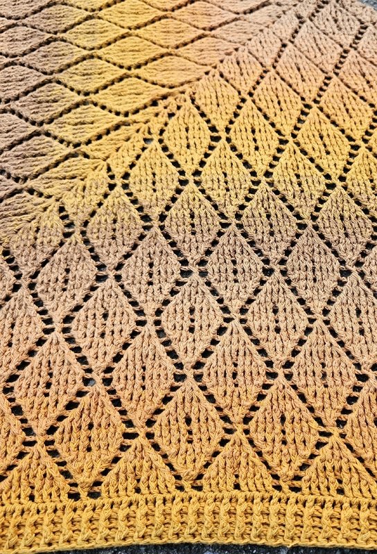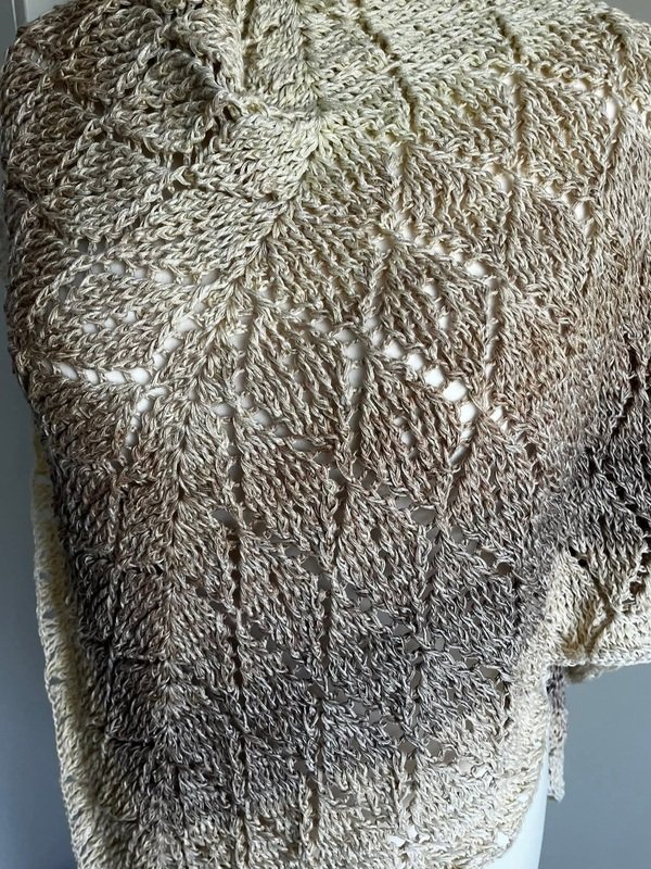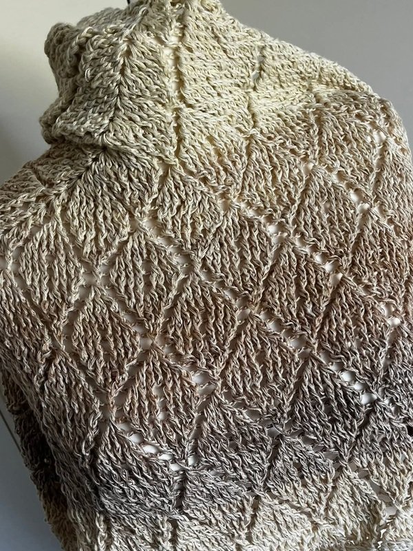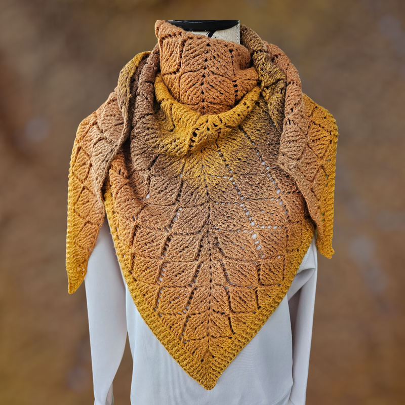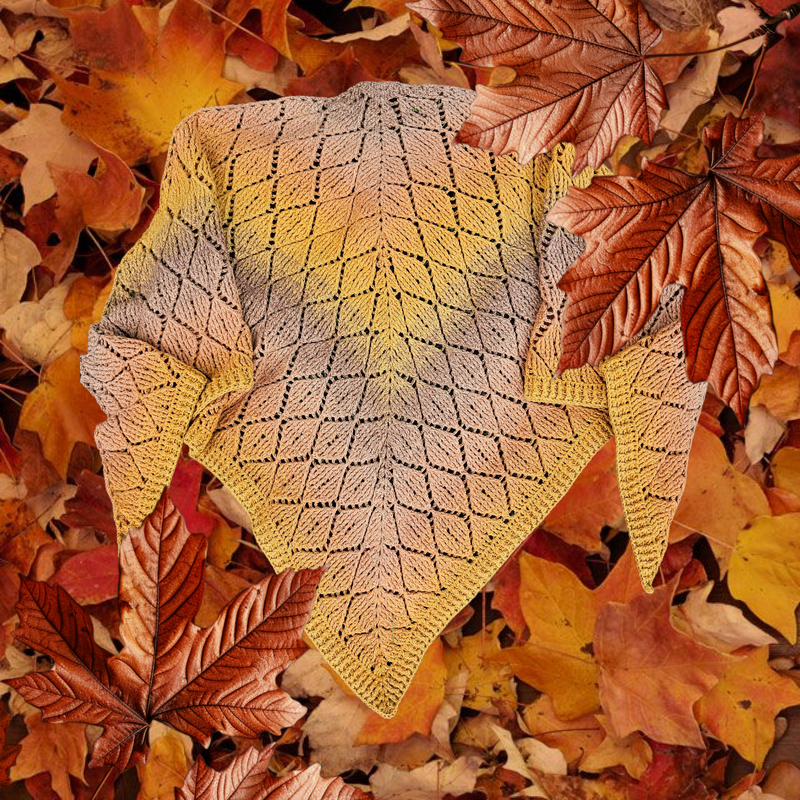 Das Tuch trägt ein einzigartiges 3D-Rautenmuster in einer tiefen und flachen Variante, das sich wie geheimnisvolle Zeichen aus dem Gewebe erhebt und mit Schatten und Schimmer spielt – als hätte der Herbst selbst seine Spuren hinterlassen.