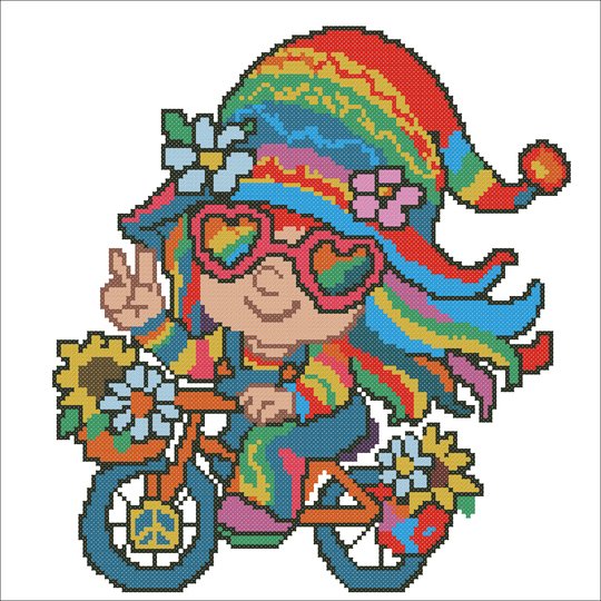 Bring joy and color to your stitching with this vibrant hippie cross stitch pattern .