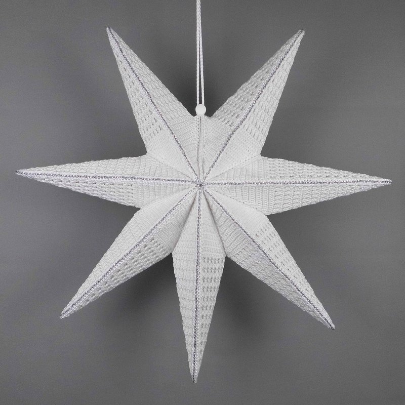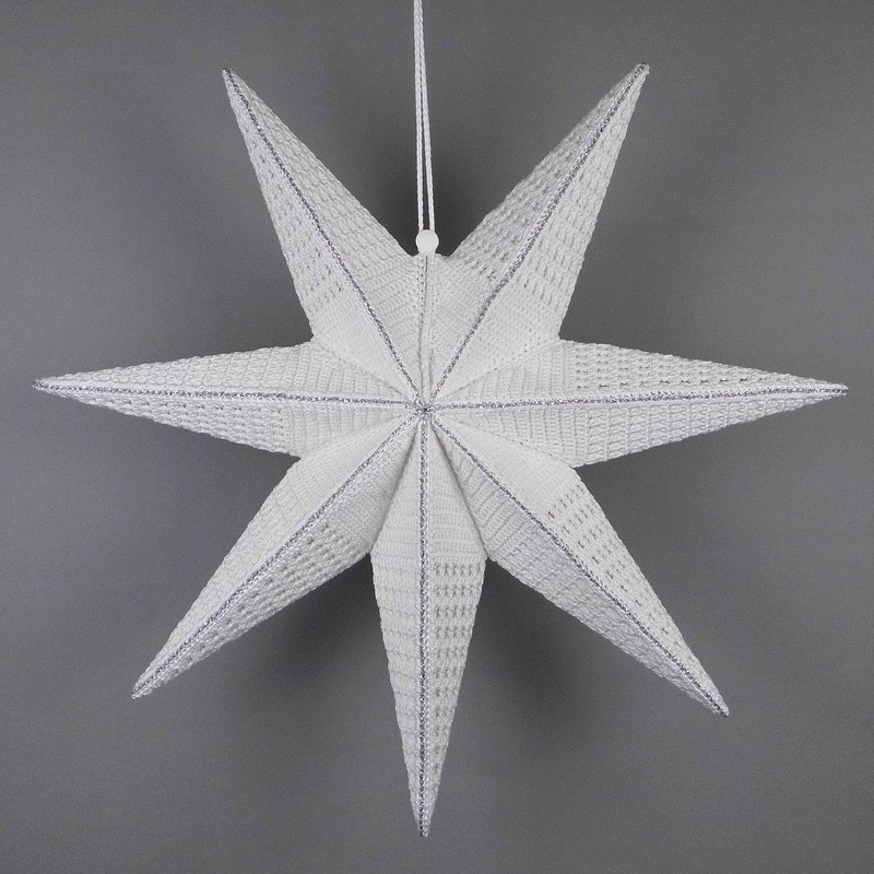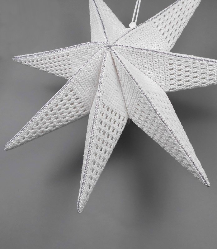 The extraordinary 3D star lantern creates a magical atmosphere in your home. You can crochet the 3D star in two sizes (approx. 37 cm and 63 cm / 14.5" and 24.8") using cotton yarn and use it to decorate windows and doors – not just at Christmas time! And when you don't want to decorate your beautiful star, you can store it away in a convenient space-saving manner until its next decorative use.