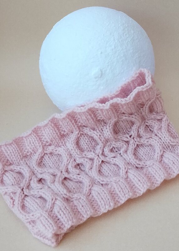 This close-fitting cowl is knitted flat on 4.0mm needles in DK yarn, with a neat seam running up the back. The pattern is fully written; no charts, making it accessible and easy to follow.