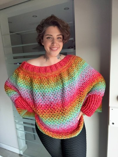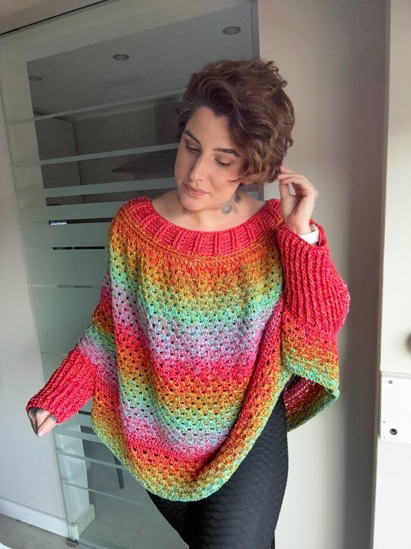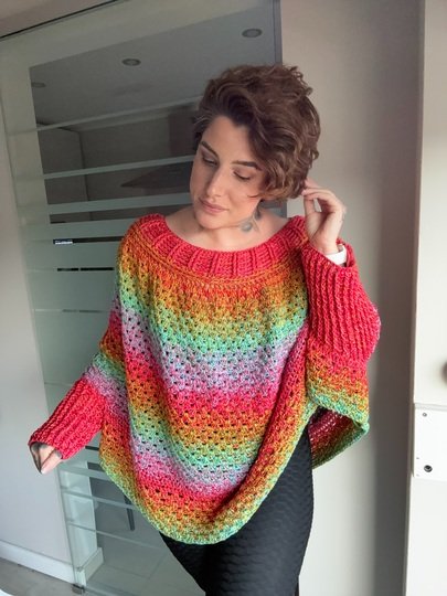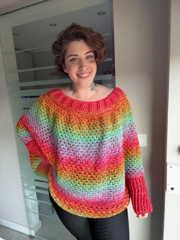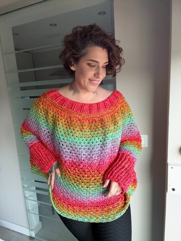Mit dem RAINBOW POP-UP Pullover bringst du Farbe, Freude und Kreativität auf die Nadel.