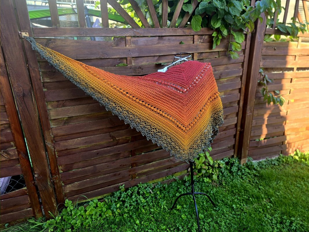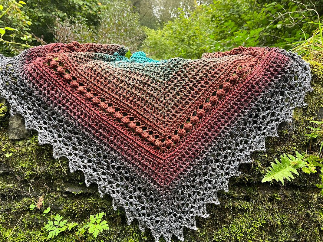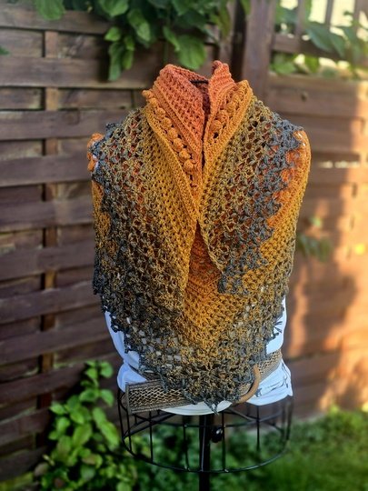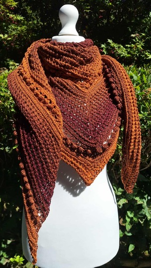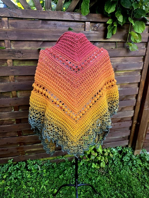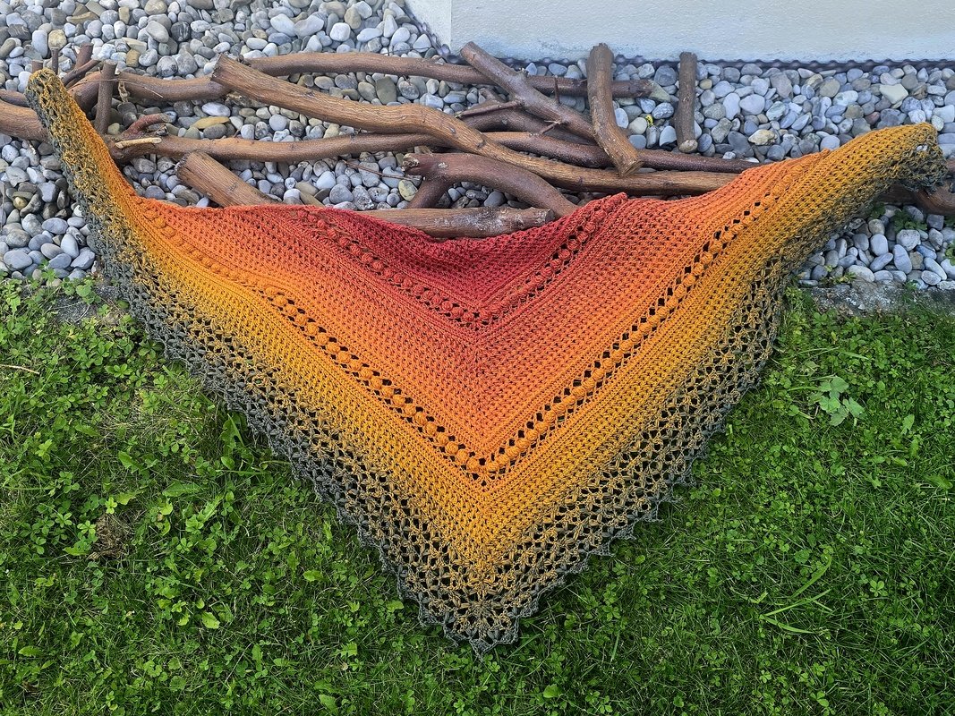 „Akiko“ (japanisch 秋子 = Herbstkind) ist ein elegantes halbflaches Dreieckstuch, das sich perfekt in die kühle Jahreszeit einfügt.