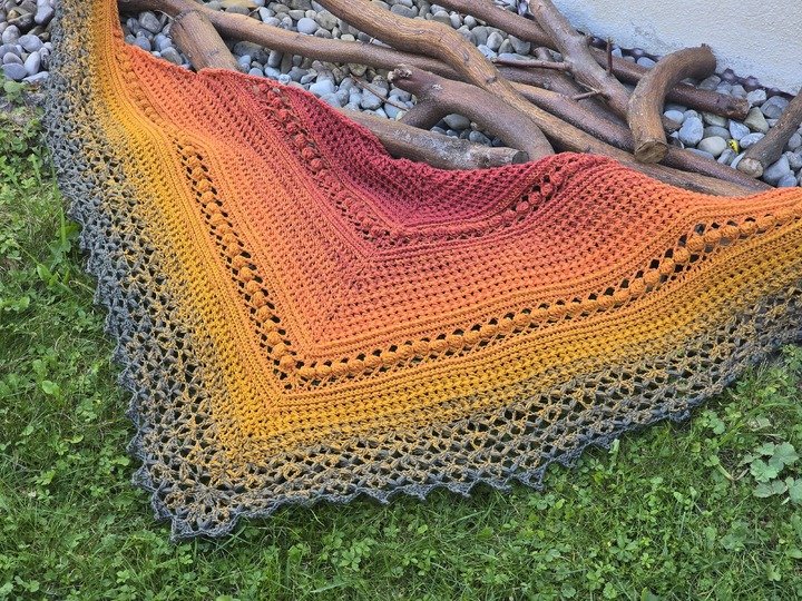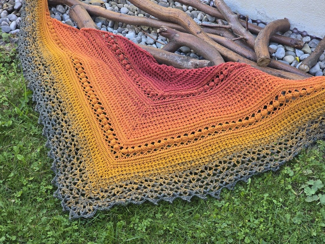 Wer möchte, kann die Bordüre ganz weglassen, dann ist das Tuch auch für ambitionierte Anfänger:innen sehr gut geeignet.