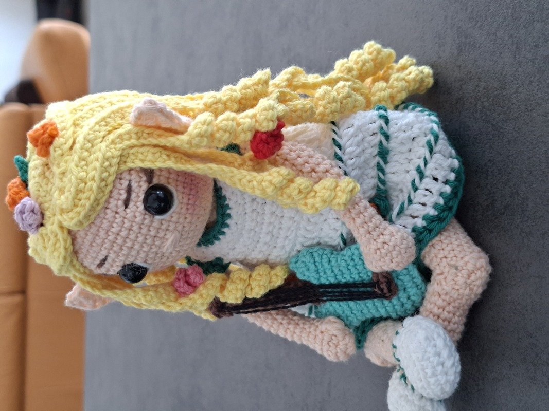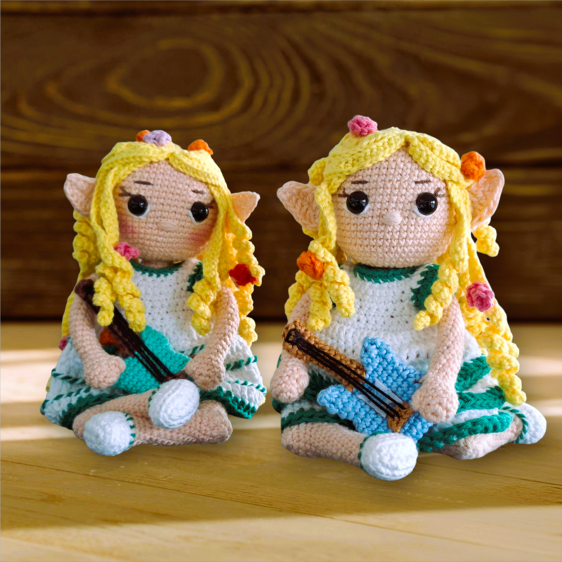 Bitte beachten: Diese Häkelanleitung beinhaltet lediglich Anweisungen zum Häkeln der Elfenpuppe Almina mit Gitarre. Das fertige Produkt ist nicht enthalten.