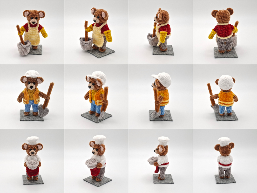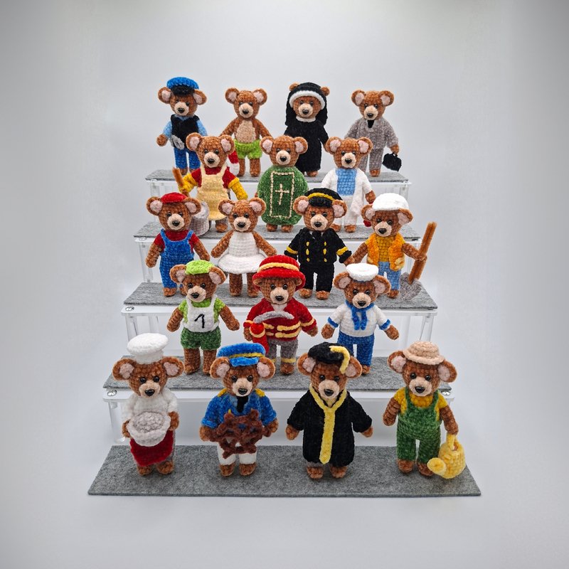 Using a 2,0mm-crochet hook and a 2,0mm-velvet-yarn (40g/190m), the bears will be about 10-11 cm tall.