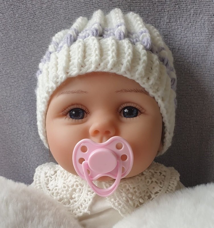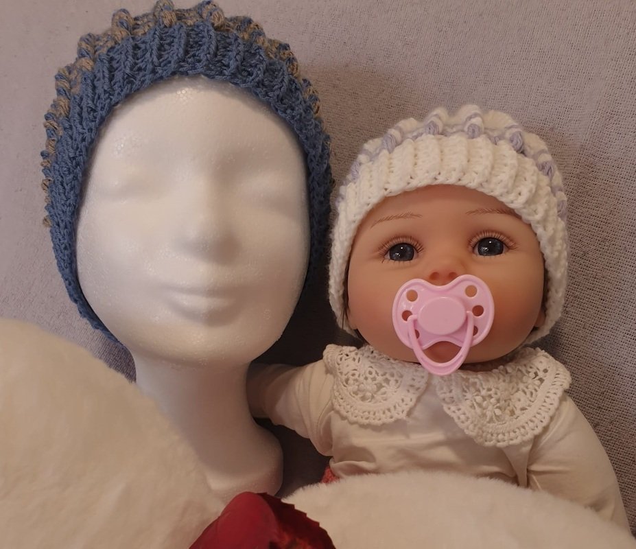 This hat can be crocheted with light cotton yarn for a summery baby hat, for example, or with thick yarn for a fluffy head covering.