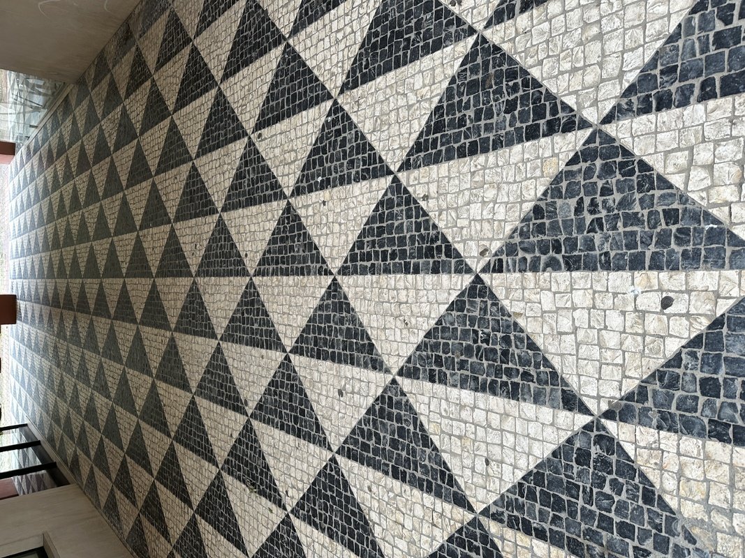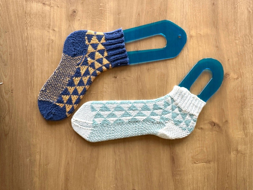“Why wander far afield when the good lies so near?” – This line by the German poet Johann Wolfgang von Goethe resonated with me when I visited the wonderful yarn shop “Mom’s Knitting” in the Lisbon district Alvalade. The pavement right in front of the shop is made up of a simple but beautiful pattern of the Calçada Portuguesa. I simply had to put it into my new socks. Isn’t it pretty? And so easy to knit, too!