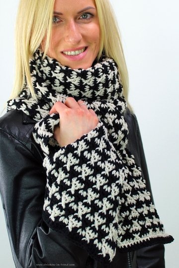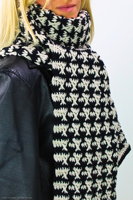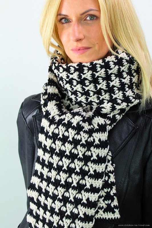 The MerinoPur #2 is an elegant crochet scarf in a modern black-and-white look –