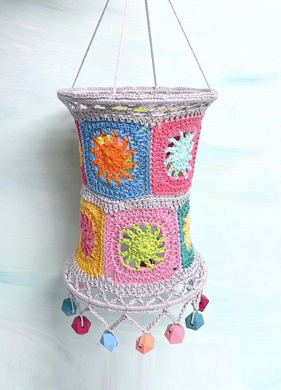This pattern walks you through, step by step, with text and lots of close-up photos, how to crochet granny-square lanterns in a bright, boho style.