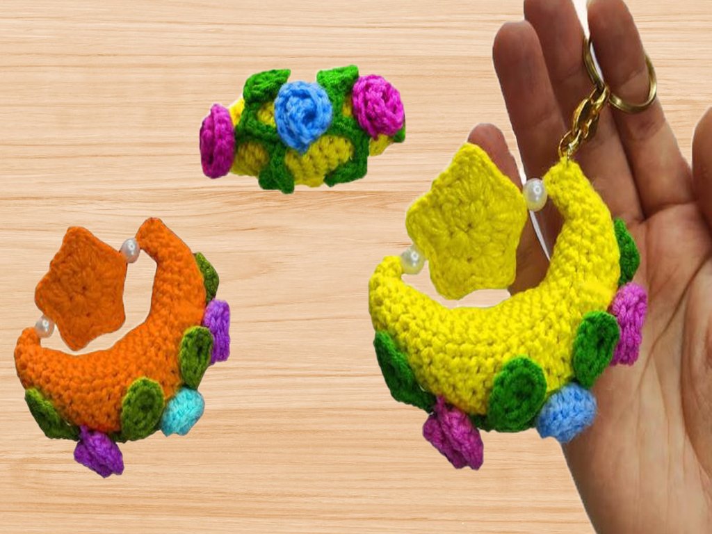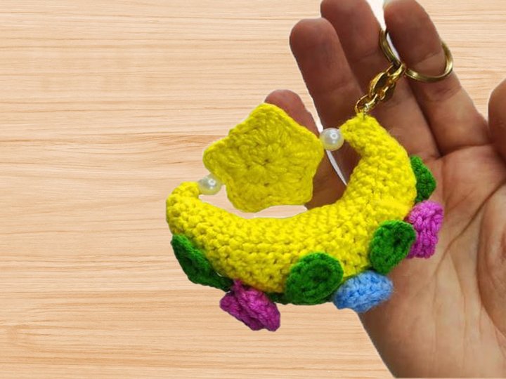 Create this adorable Amigurumi Moon and Star Keychain — a cute handmade accessory that makes a perfect gift or bag charm!
