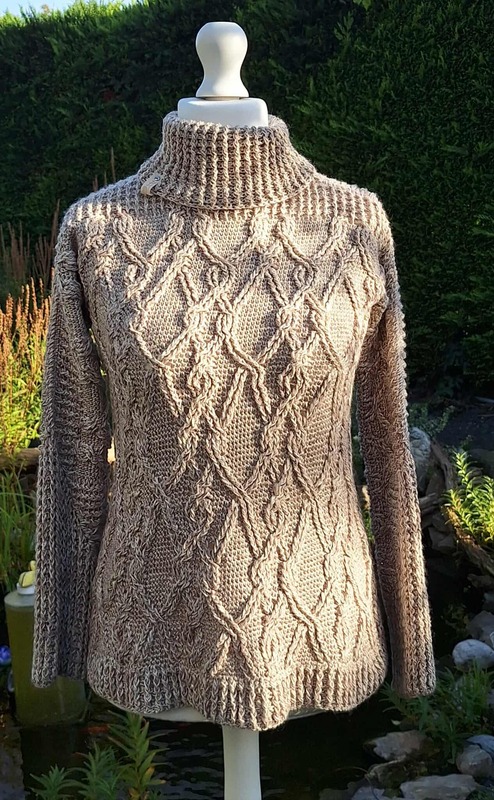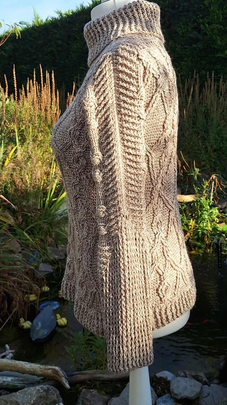 Das interessante "Zopf-in-Zopf-Muster" ist ein richtiger Blickfang, es erweckt den Eindruck, als wäre man von ineinander verschlungenen Zöpfen "umarmt".