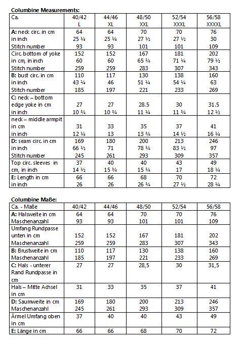 Columbine is a pattern for a lace vest or cardigan and contains detailed instructions for 5 different double sizes and two different yarn weights.