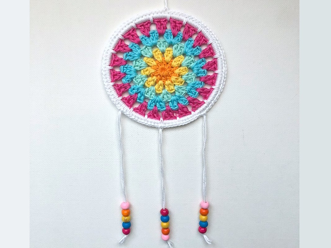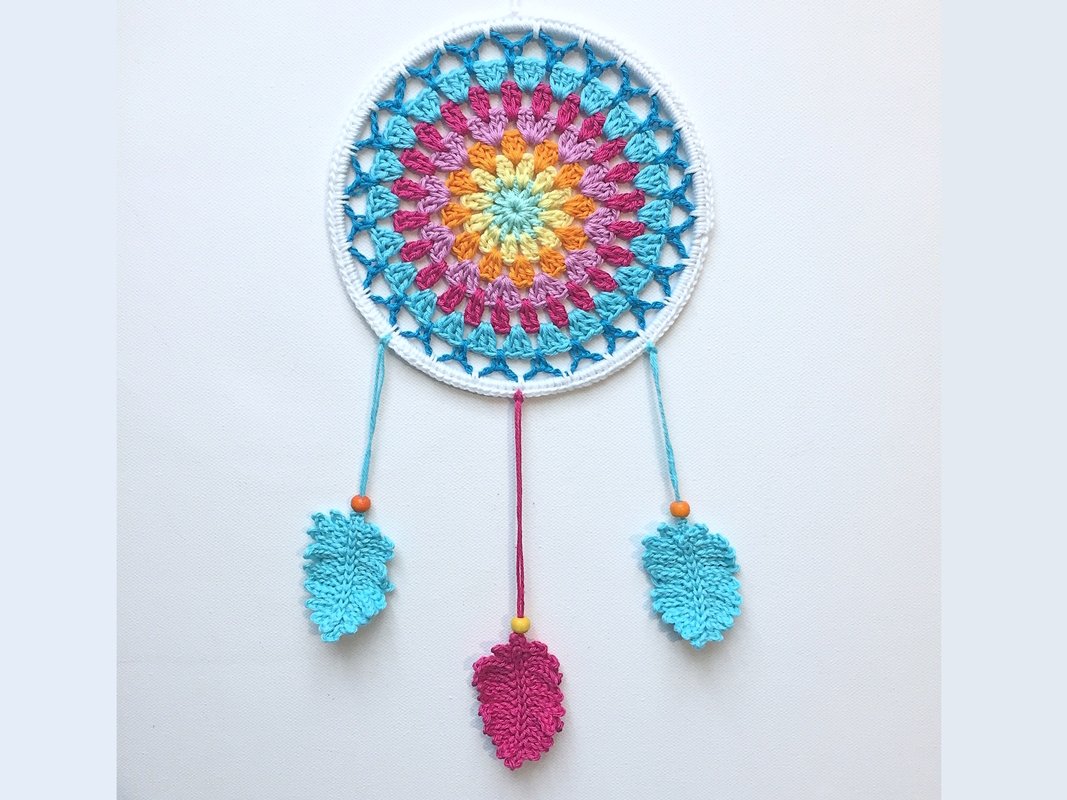 Crocheting these dreamcatchers is very simple and is therefore also wonderful for beginners. Basic crochet skills (crocheting in rounds, half, double, treble crochet, increases and decreases) are required.