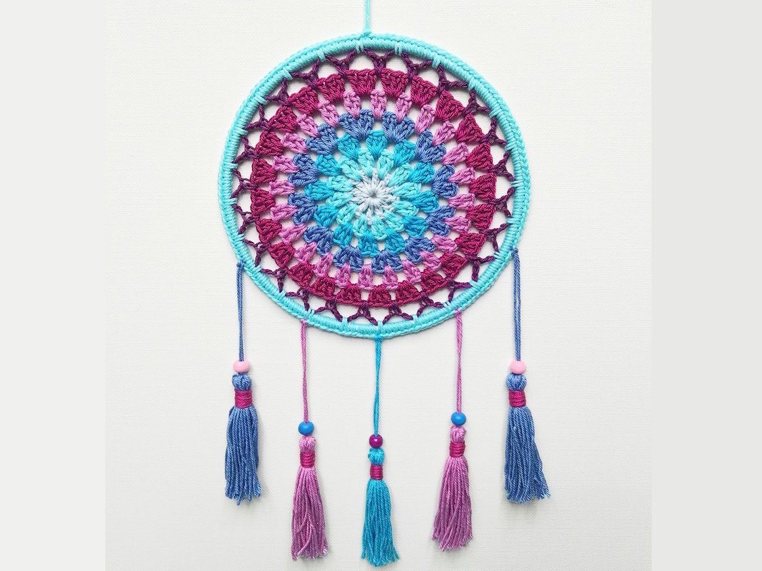 Crochet yourself colorful dreamcatchers for good dreams in the bedroom and children's room, but also just as a great decoration for kitchen, living room, garden. There are no limits to your creativity.