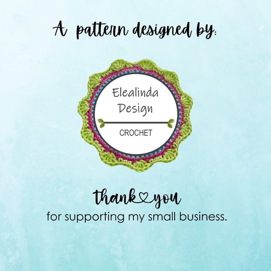 Items made from this pattern may be sold in reasonable quantities (i.e., what a single person can produce on their own) for commercial purposes. A credit to the original designer is mandatory (“created based on a pattern from Elealinda-Design”).