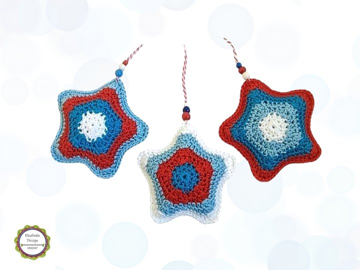 The finished stars measure approximately 7–8 cm in diameter, depending on the hook size you use.