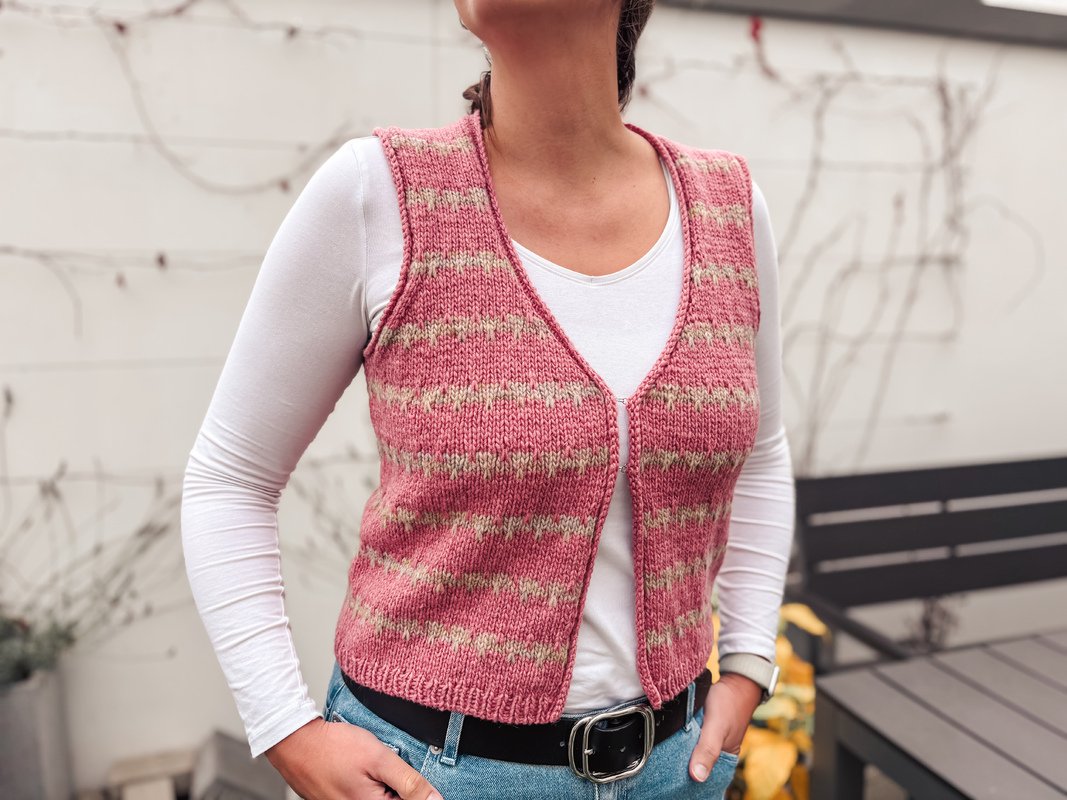 Frieda's MosaicVest is perfect for days when you need a light, warm layer. Whether for a walk, at the office, or cozying up at home. The optional striped pattern adds a subtle touch to the simple cut but can also be omitted. The result is a timeless knitwear piece that's versatile and will last for years.